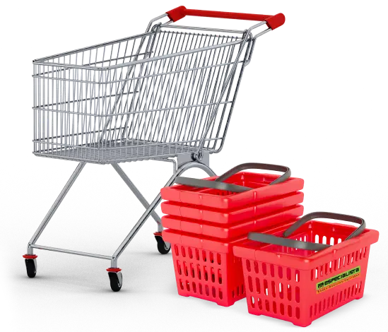 Carrinhos modelos e tamanhos padrões desde 80L até 210L, DUPLO desde 50L até 160L, carrinhos pintados e plásticos (consulte as cores). Carrinhos com opções de cesto único e duplo, com porta bebê ou bebê conforto, carro pet, carro infantil com brinquedo e carro inclusão